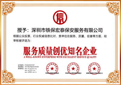 熱烈祝賀我司鐵保宏泰深圳保安公司榮獲服務質量創優知名企業證書,我司將不忘初心,繼續努力服務好每個客戶,為客戶企業保駕護航。