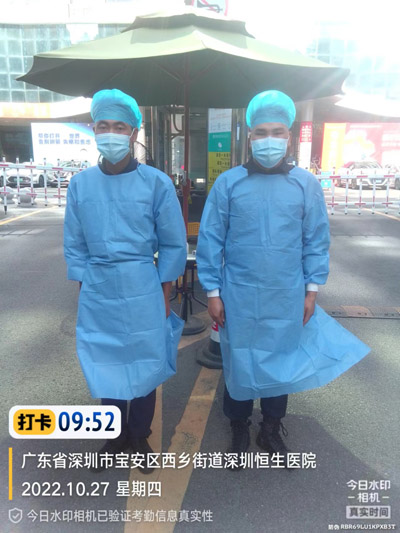 我司鐵保宏泰深圳保安公司駐深圳市寶安區西鄉街道深圳恒生醫院日常安保護衛巡邏。