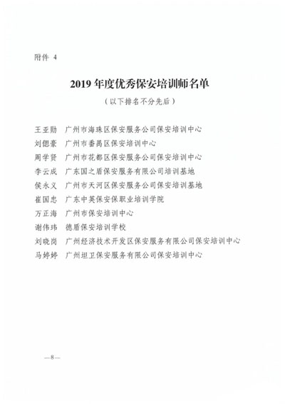 2019年度優(yōu)秀保安培訓(xùn)師名單