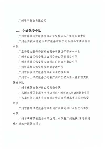一、先進(jìn)保安從業(yè)單位